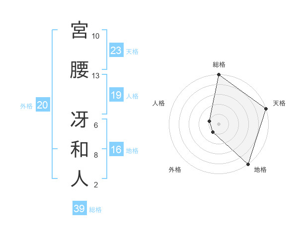 宮腰 冴和人さんを姓名の画数から五運を鑑定