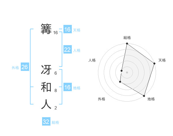 篝 冴和人さんの天格は16画の5点!