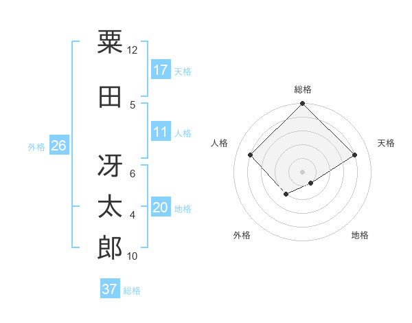 粟田 冴太郎さんの総格は37画の5点!