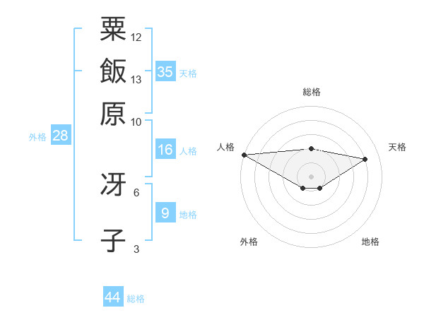 粟飯原 冴子さんを姓名の画数から五運を鑑定