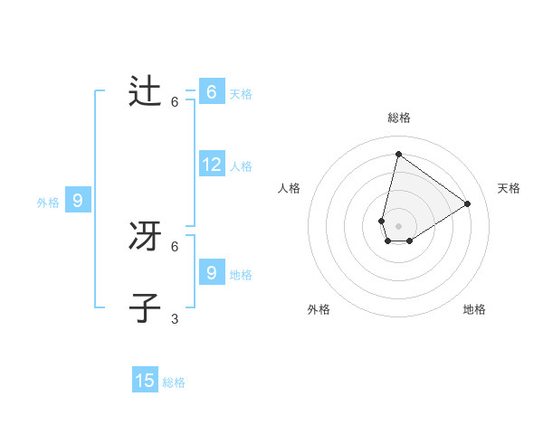辻 冴子さんの総格は15画の4点!