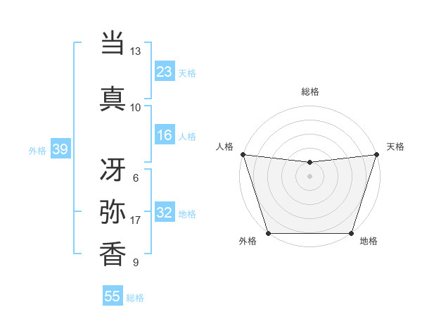 当真 冴弥香さんを姓名の画数から五運を鑑定