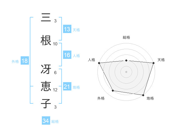 三根 冴恵子さんを姓名の画数から五運を鑑定