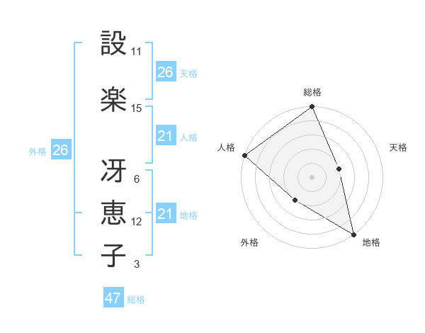 設楽 冴恵子さんを姓名の画数から五運を鑑定
