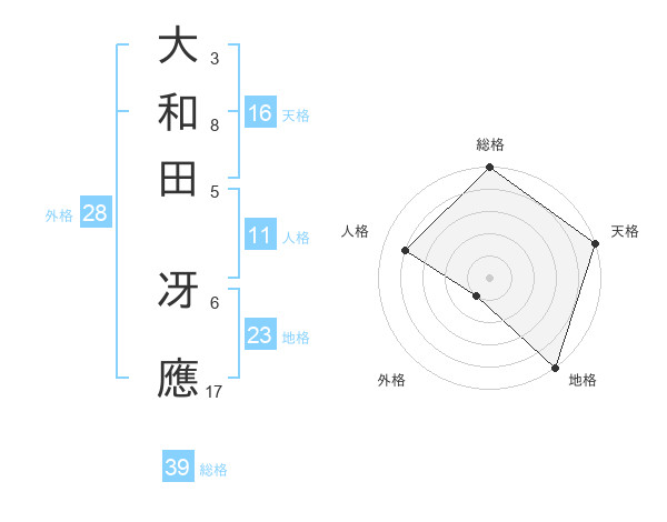 大和田 冴應さんを姓名の画数から五運を鑑定