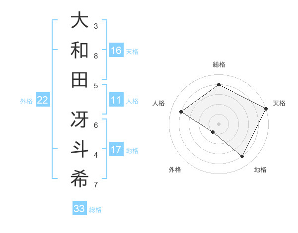 大和田 冴斗希さんを姓名の画数から五運を鑑定