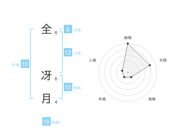 全 冴月さんの総格は16画の5点!