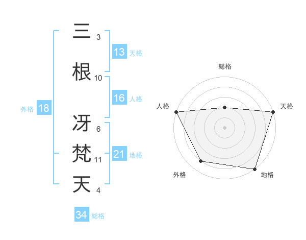 三根 冴梵天さんを姓名の画数から五運を鑑定
