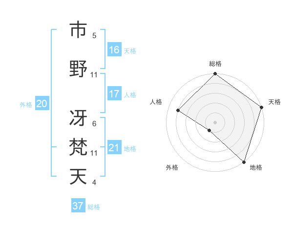 市野 冴梵天さんの総格は37画の5点!