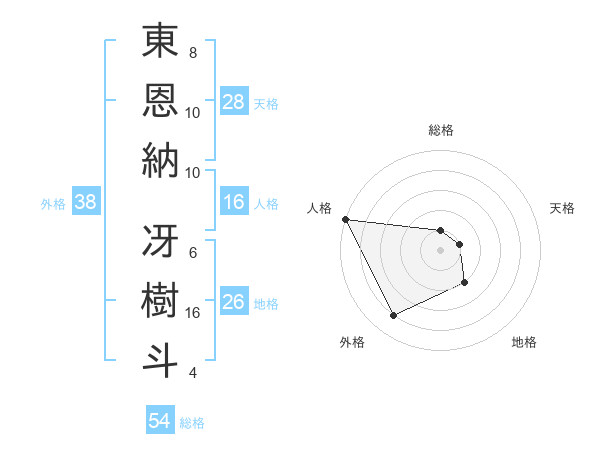 東恩納 冴樹斗さんの総格は54画の1点!