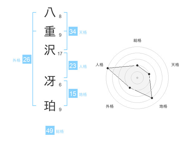 八重沢 冴珀さんを姓名の画数から五運を鑑定