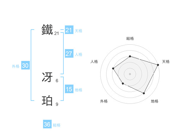 鐵 冴珀さんの天格は21画の5点!