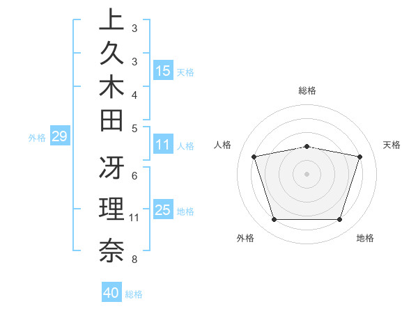 上久木田 冴理奈さんの天格は15画の4点!