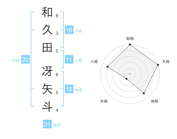 和久田 冴矢斗さんを姓名の画数から五運を鑑定
