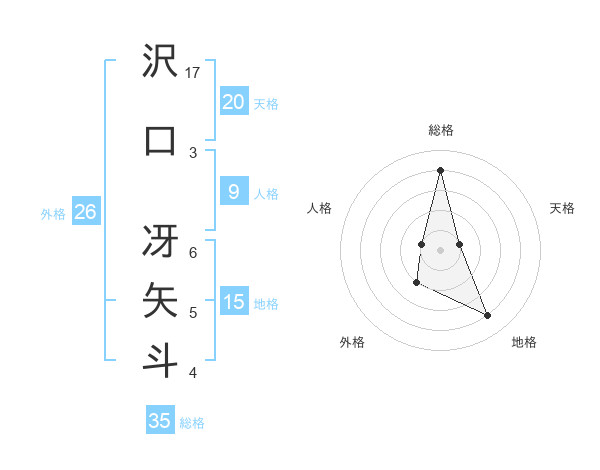 沢口 冴矢斗さんを姓名の画数から五運を鑑定