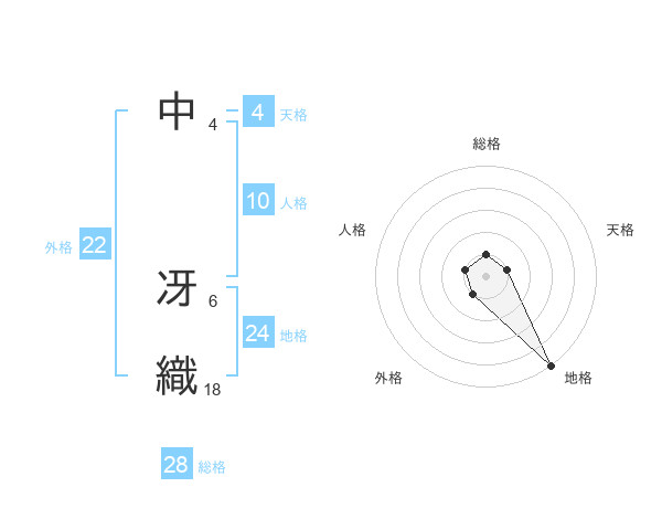 中 冴織さんの総格は28画の1点!