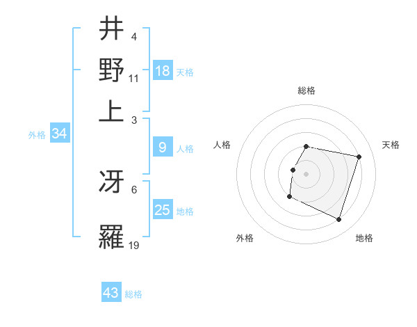 井野上 冴羅さんの総格は43画の2点!