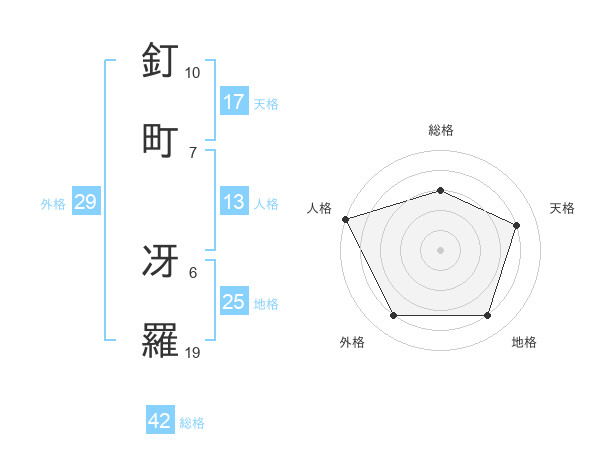 釘町 冴羅さんの天格は17画の4点!
