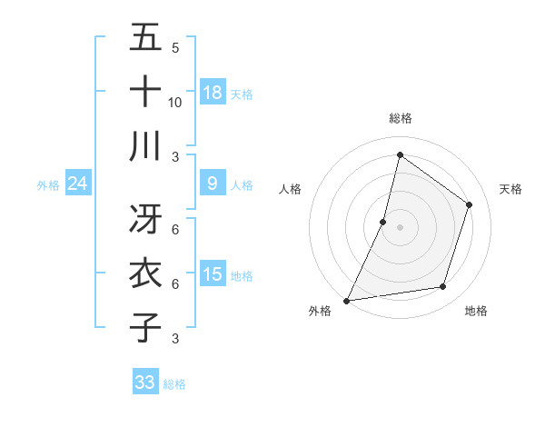 五十川 冴衣子さんを姓名の画数から五運を鑑定