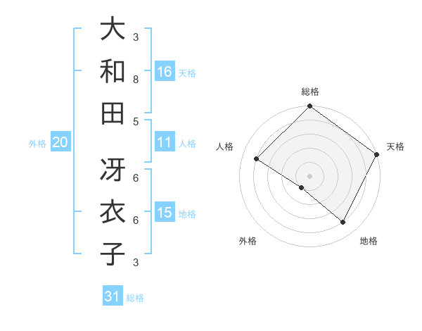大和田 冴衣子さんを姓名の画数から五運を鑑定