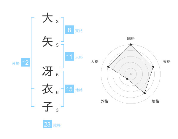 大矢 冴衣子さんの天格は8画の4点!