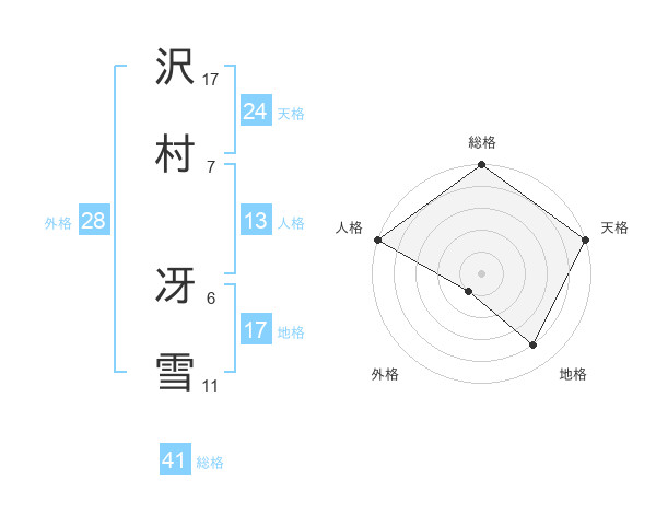 沢村 冴雪さんを姓名の画数から五運を鑑定
