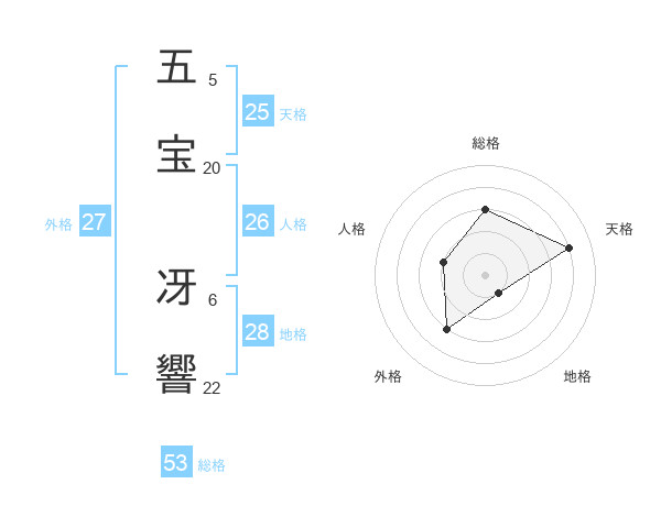 五宝 冴響さんを姓名の画数から五運を鑑定