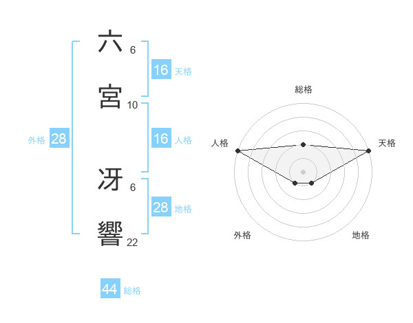 六宮 冴響さんを姓名の画数から五運を鑑定
