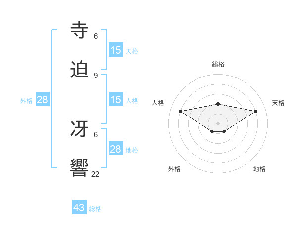 寺迫 冴響さんの総格は43画の2点!