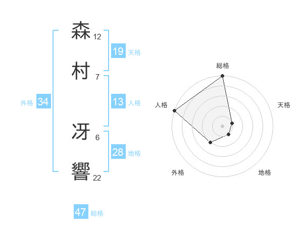 森村 冴響さんの総格は47画の5点!