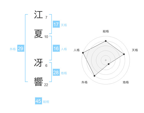 江夏 冴響さんの総格は45画の4点!