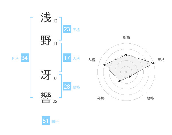 浅野 冴響さんの総格は51画の3点!