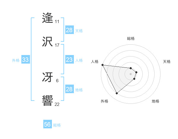 逢沢 冴響さんの総格は56画の1点!