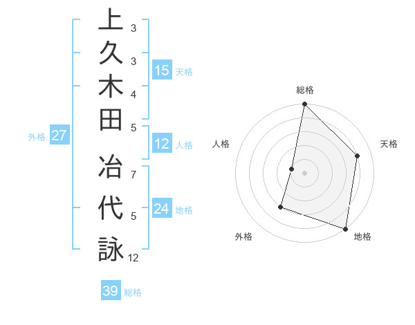 上久木田 冶代詠さんを姓名の画数から五運を鑑定