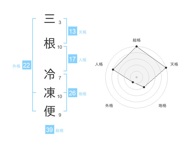 三根 冷凍便さんを姓名の画数から五運を鑑定