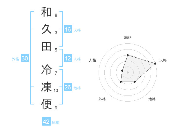 和久田 冷凍便さんを姓名の画数から五運を鑑定