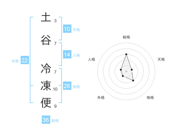 土谷 冷凍便さんを姓名の画数から五運を鑑定