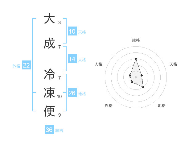 大成 冷凍便さんを姓名の画数から五運を鑑定