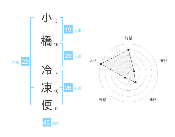 小橋 冷凍便さんを姓名の画数から五運を鑑定