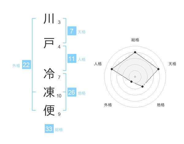 川戸 冷凍便さんの総格は33画の4点!