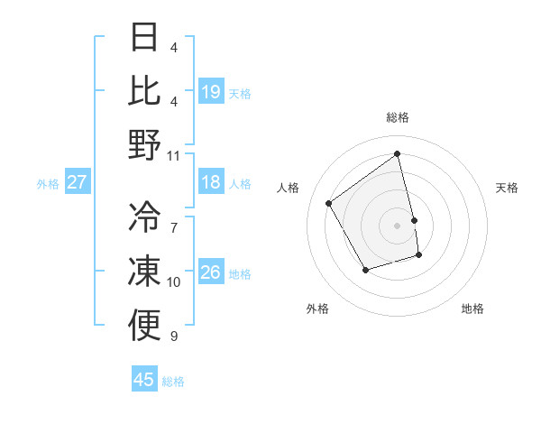 日比野 冷凍便さんを姓名の画数から五運を鑑定