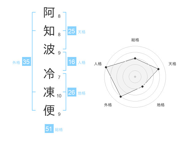 阿知波 冷凍便さんを姓名の画数から五運を鑑定