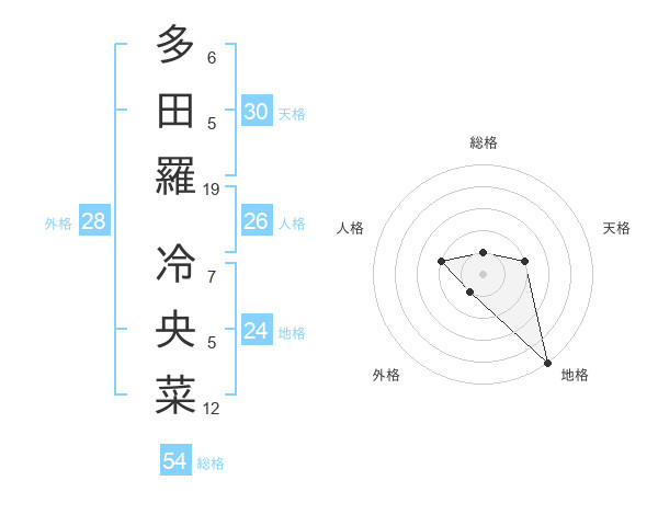 多田羅 冷央菜さんを姓名の画数から五運を鑑定