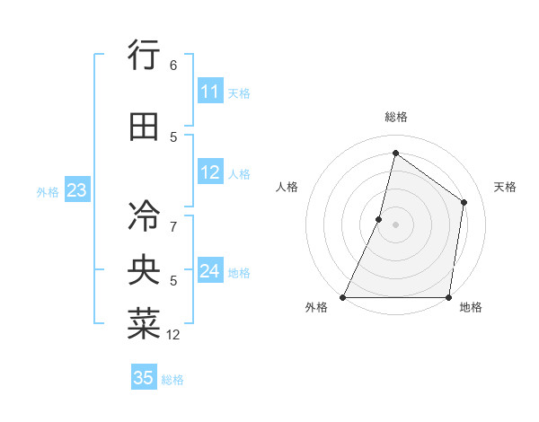 行田 冷央菜さんを姓名の画数から五運を鑑定