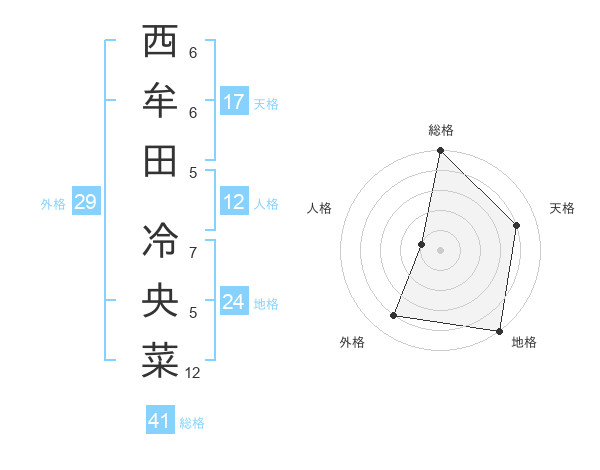 西牟田 冷央菜さんを姓名の画数から五運を鑑定