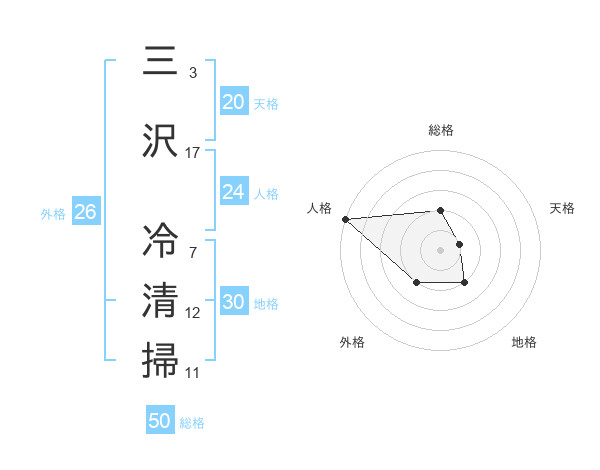 三沢 冷清掃さんを姓名の画数から五運を鑑定