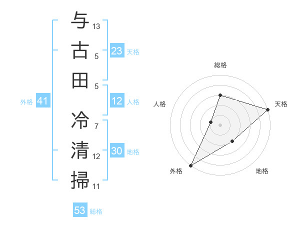 与古田 冷清掃さんを姓名の画数から五運を鑑定