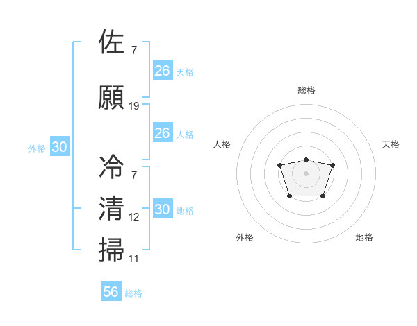佐願 冷清掃さんを姓名の画数から五運を鑑定
