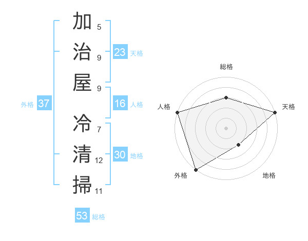 加治屋 冷清掃さんを姓名の画数から五運を鑑定