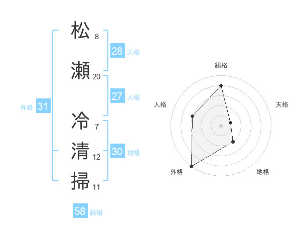 松瀬 冷清掃さんを姓名の画数から五運を鑑定